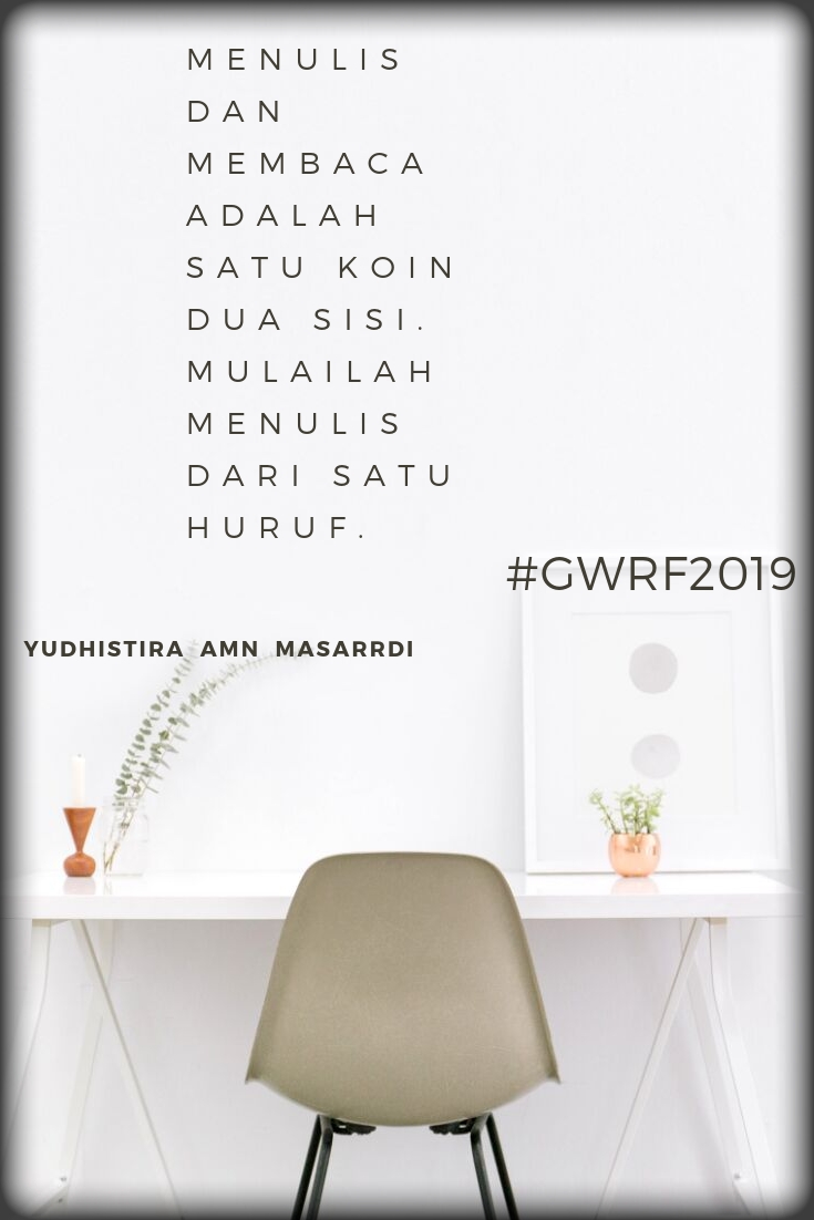 Menurut Yudhistira menulis dan membaca adalah satu koin dua sisi. Mulai menulis dari satu huruf. Sedangkan Eyang Sapardi menegaskan menulislah jangan pernah takut dituduh menjiplak. Lebih baik mencuri ilmu dari orang lain saat kita mengembangkan kemampuan menulis.