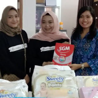 | Mbak Sasi & mbak Deta menyerahkan bingkisan yang diterima ibu Rietma |