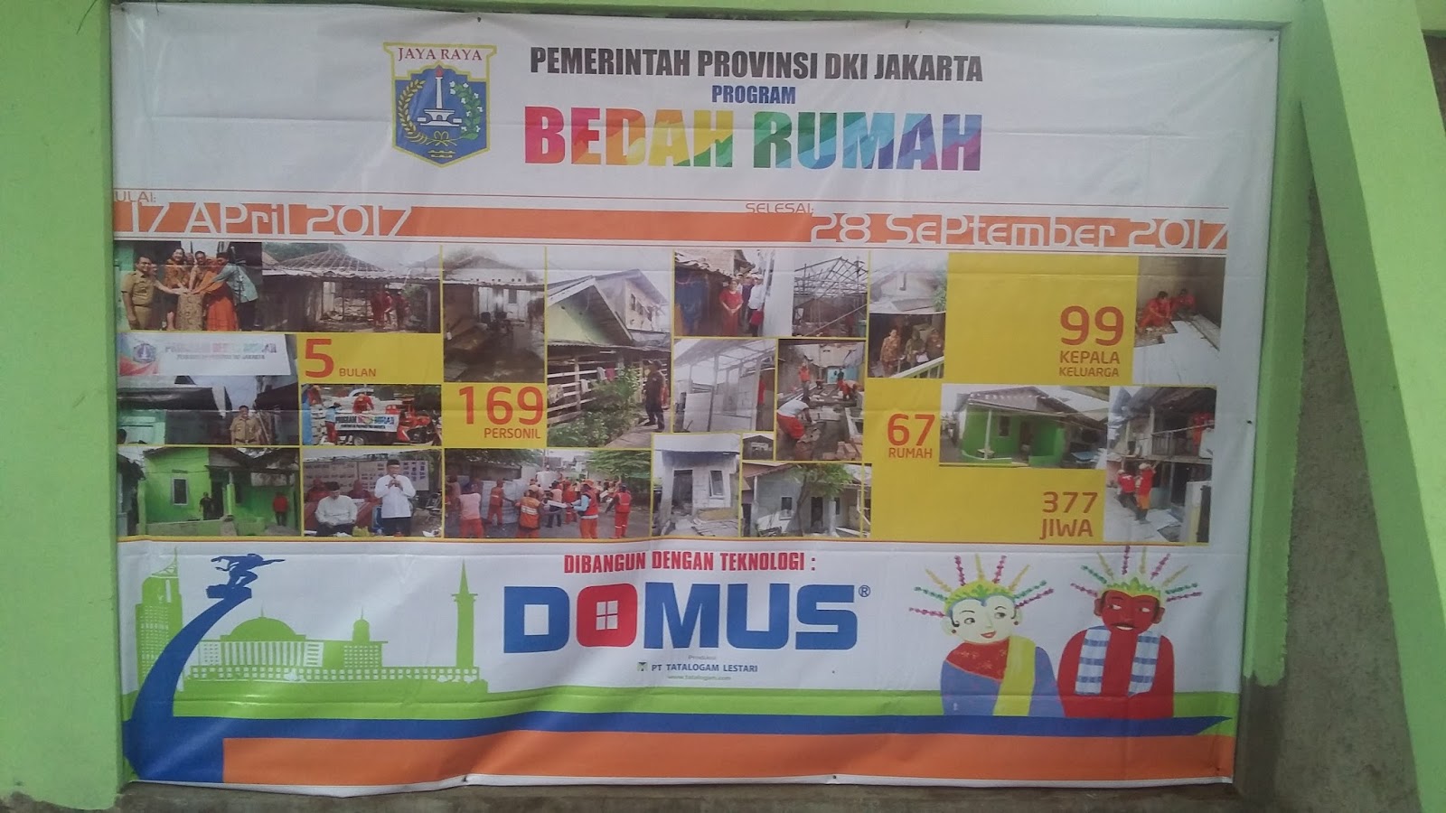 Gubernur DKI beserta rombongan meninjau secara langsung rumah warga yang telah dibedah. Salah satunya adalah rumah bapak Uwik, rumah warisan orang tua yang ditinggali 37 anggota keluarga ini awalnya sudah hampir rubuh, selalu kebajinran dan bocor dimana-mana. Setelah dibedah menggunakan DOMUS dengan batako permanen dan atap baja rumah tersebut berdiri kokoh. Ventilasi udara yang sehat dan rumah yang bersih menjadikan rumah tersebut layak huni.