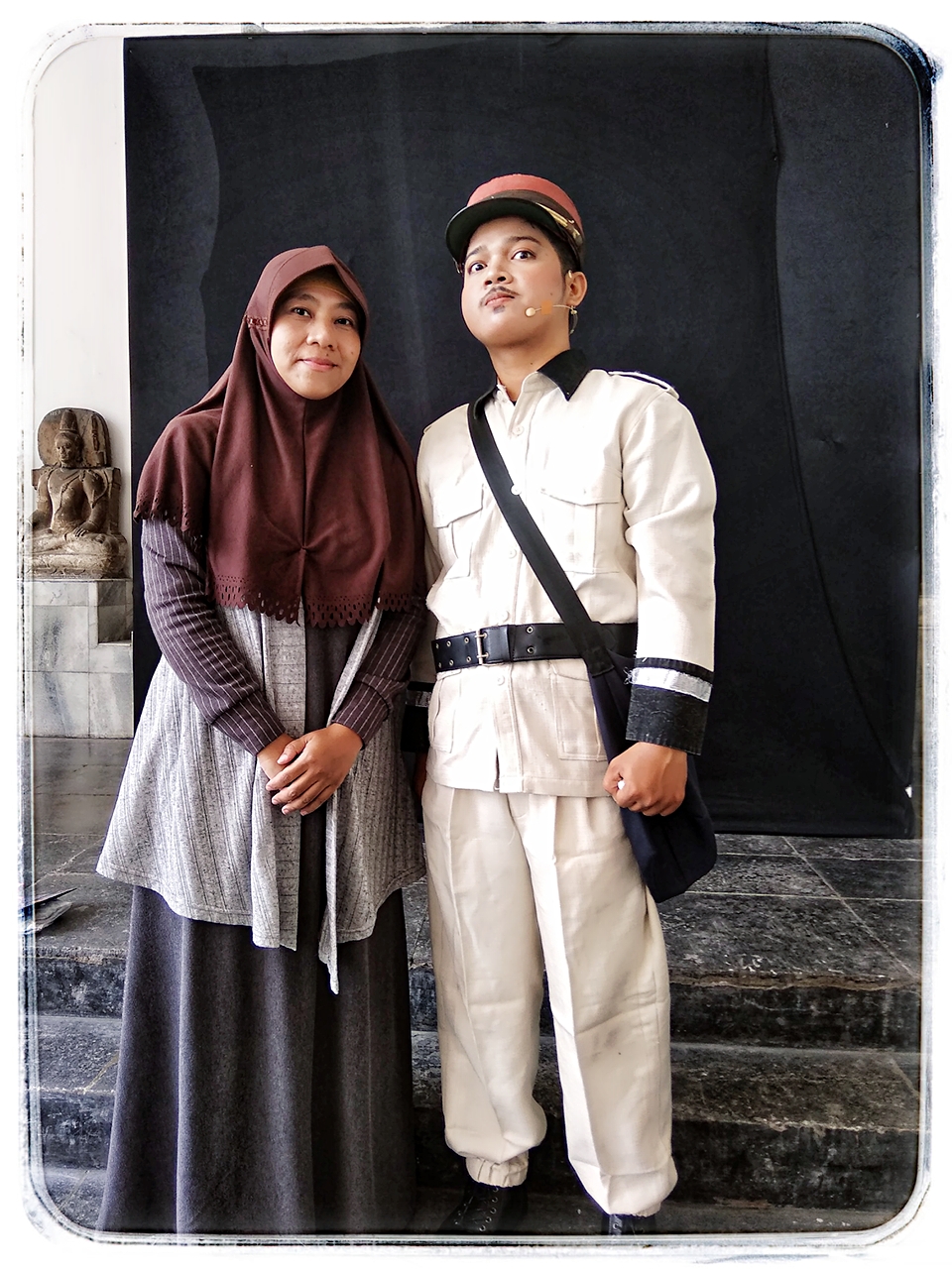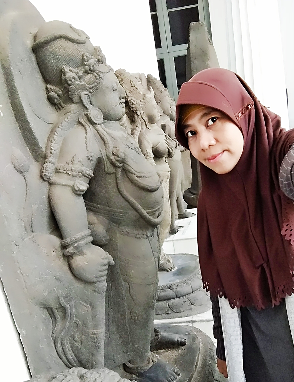 Setelah berfoto ria bersama pemain drama, saya pun berfoto bersama artefak. Merekalah alasan saya berada di sana sejak awal. Ada bebrapa foto yang saya minta tolong orang lain untuk mengambilkan jika posisinya tidak memungkinkan untuk swafoto. Namun seringnya saya menggunakan tongsis untuk mengambil gambar.