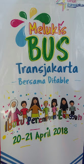 Hari selasa lalu (24/4/18) bus Trans Jakarta dengan motiv gambar karya anak-anak difabel diluncurkan oleh pemda DKI. Bus tersebut telah dihias aneka lukisan dengan menggunakan cat akrilik oleh para anak-anak autisi yang tergabung dalam yayasan Art Brut Indonesia asuhan pak Toto.