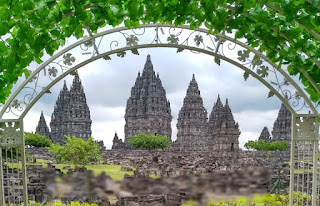 | Salah satu spot cantik untuk berfoto bersama orang tersayang dengan latar belakang candi Prambanan |